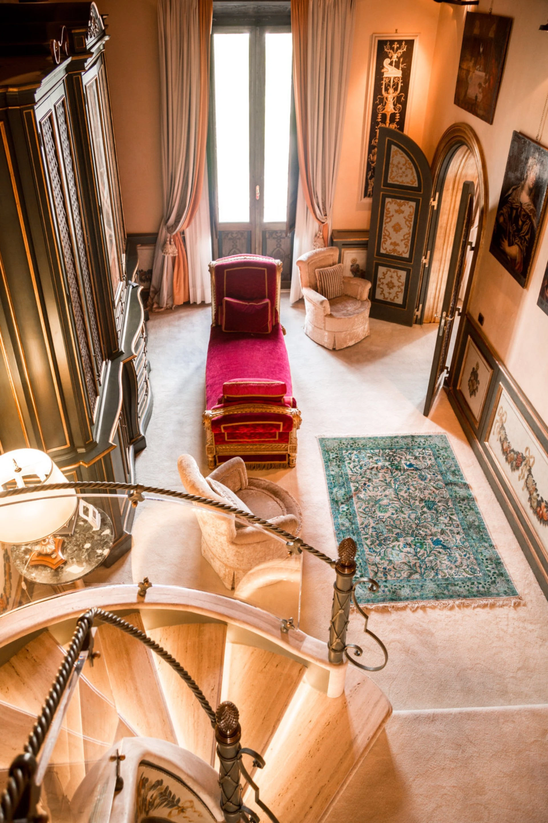 Art is the common thread of this suite, which is why there is no shortage of Renaissance-style decorations and frescoes that frame the sleeping area. The Papal suite can be reached by an extremely elegant marble staircase or by a separate entrance to ensure our guests the utmost privacy during their stay. Each area is decorated with unique and original art pieces, where gold details dominate.