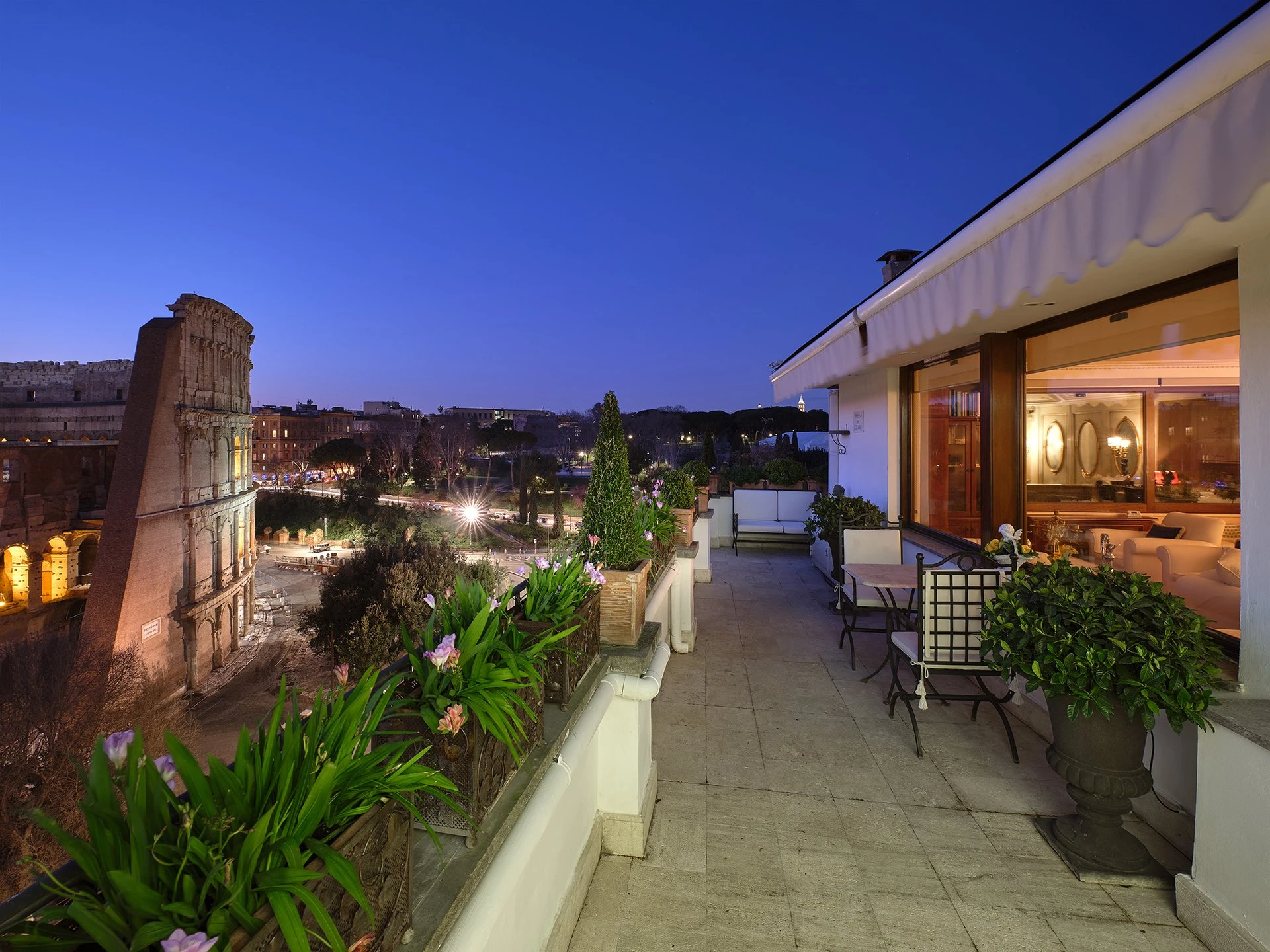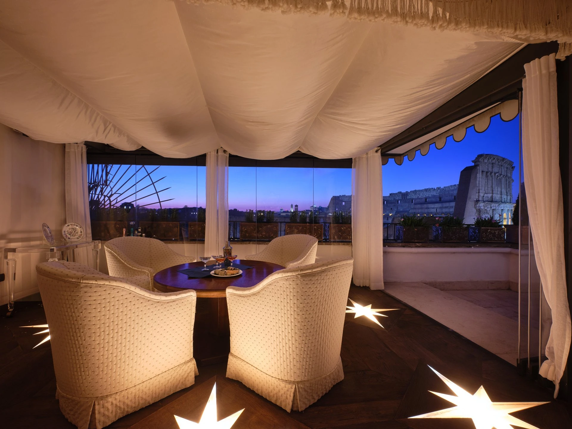 Thanks to the huge sliding walls, it is possibile to take advantage of this terrace in any season you wish to visit the City. You can always choose between indoor or outdoor areas to enjoy simple aperitifs or lavish dinners facing directly on the Colosseum.