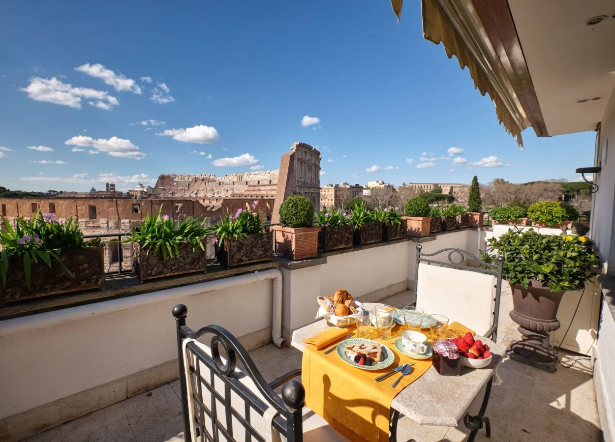 Colosseum apartment: No other apartment can offer a view and terrace closer to the Colosseum. View this short video or enjoy the pictures below.