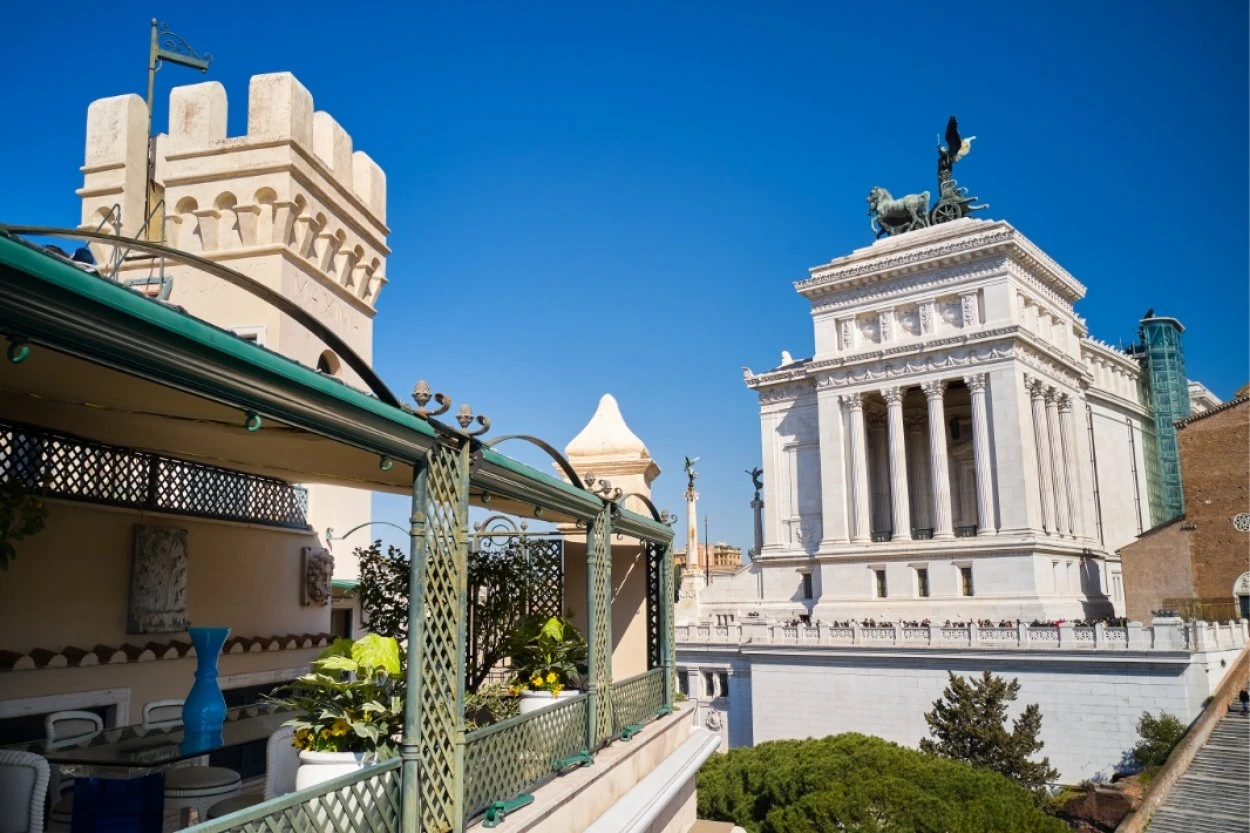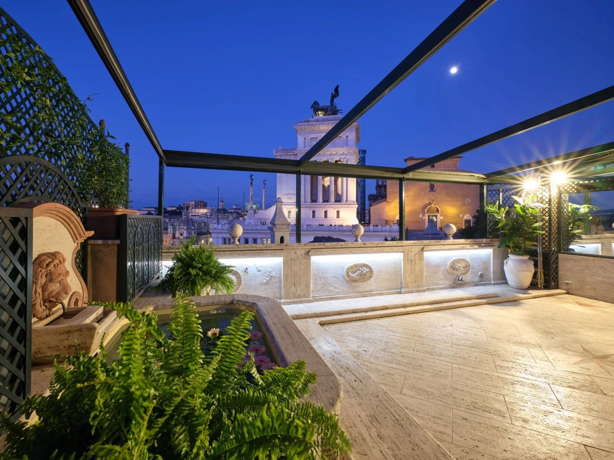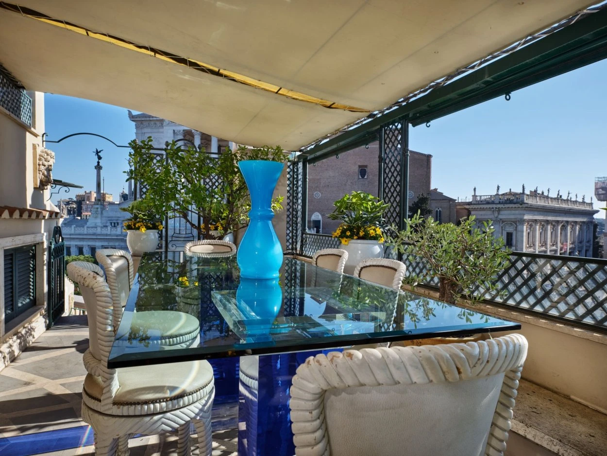 This is our flagship attic in front of the Altare della Patria, over 200 square meters (1,800 square feet) of terraces. View this short video.