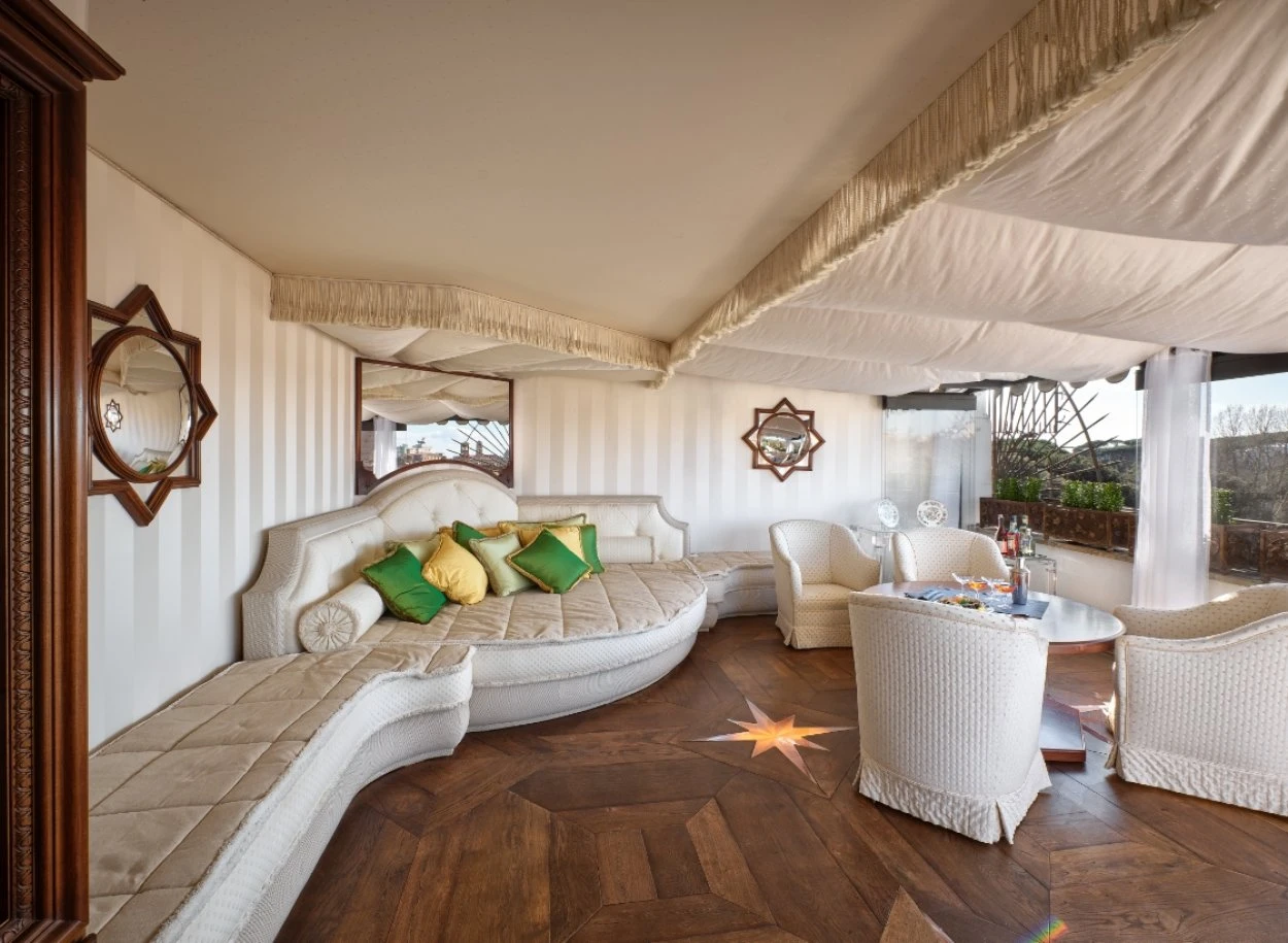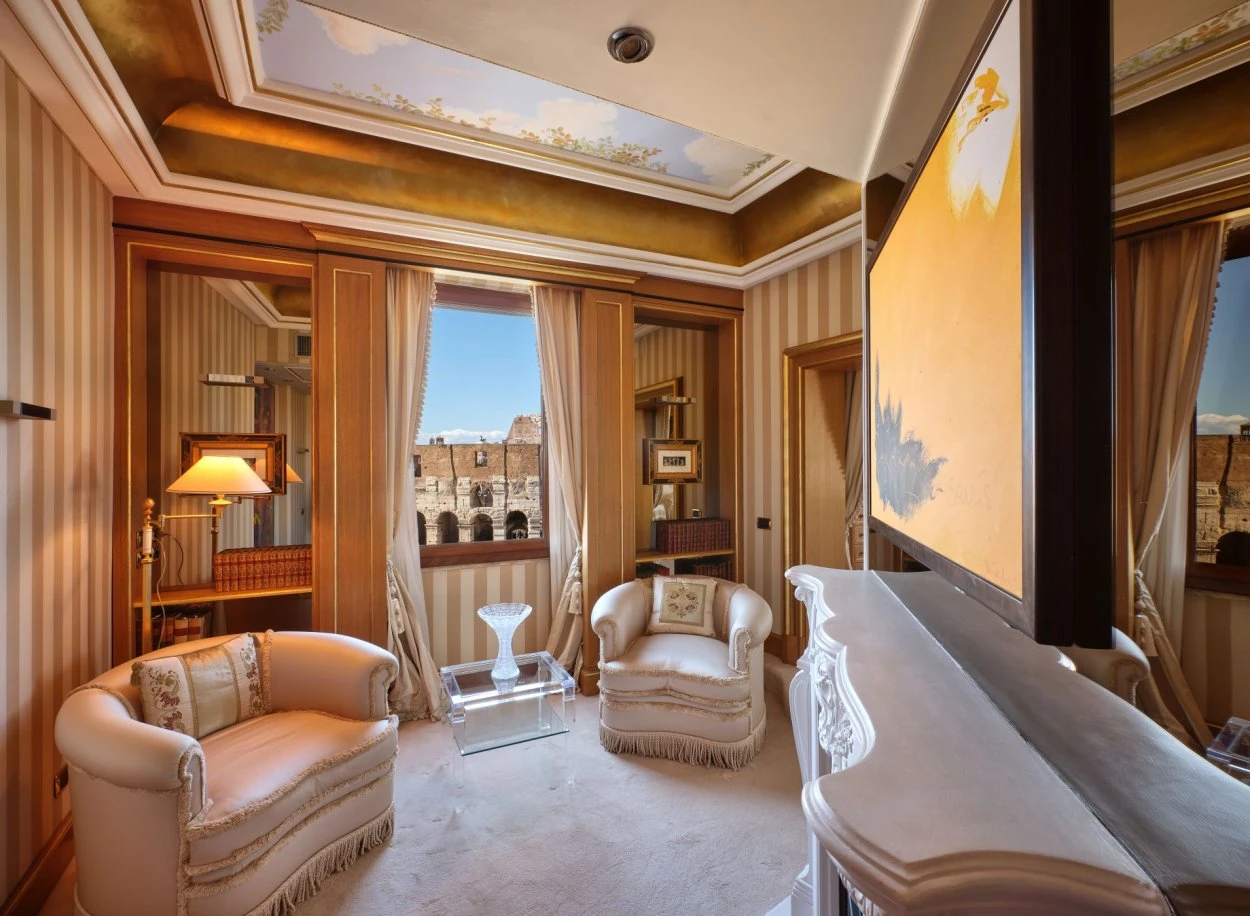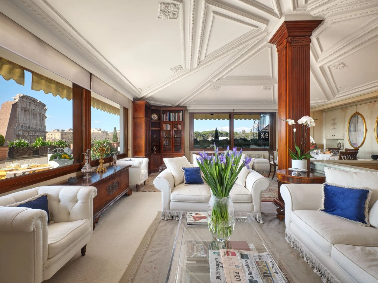 This is our flagship attic in front of the Altare della Patria, over 200 square meters (1,800 square feet) of terraces. View this short video.